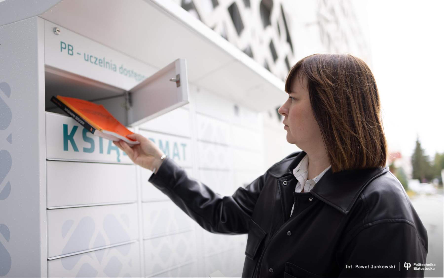 Nowoczesne, samoobsługowe urządzenie, które umożliwia odbiór zamówionych książek z Biblioteki Politechniki Białostockiej znajduje się przed Centrum Nowoczesnego Kształcenia. Uczelnia uruchomiła książkomat, który umożliwia odbiór zamówionych książek o dowolnej porze dnia i nocy. To pierwsze tego typu rozwiązanie wśród białostockich uczelni.