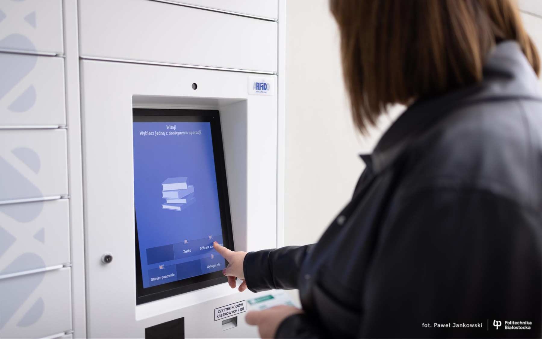 – Użytkownicy naszej biblioteki, którzy mają aktywną kartę biblioteczną, mogą zamówić książki 24 godziny na dobę w katalogu bibliotecznym. Powinni wybrać opcję odbioru książki jako książkomat, następnie wystarczy przyjść do naszego urządzenia, zalogować się na swoje konto wykorzystując identyfikator użytkownika i wtedy automatycznie otwiera się skrytka, w której został umieszczony księgozbiór pozostawiony przez bibliotekarzy – mówi Elżbieta Kierejczuk, dyrektor Biblioteki Politechniki Białostockiej.