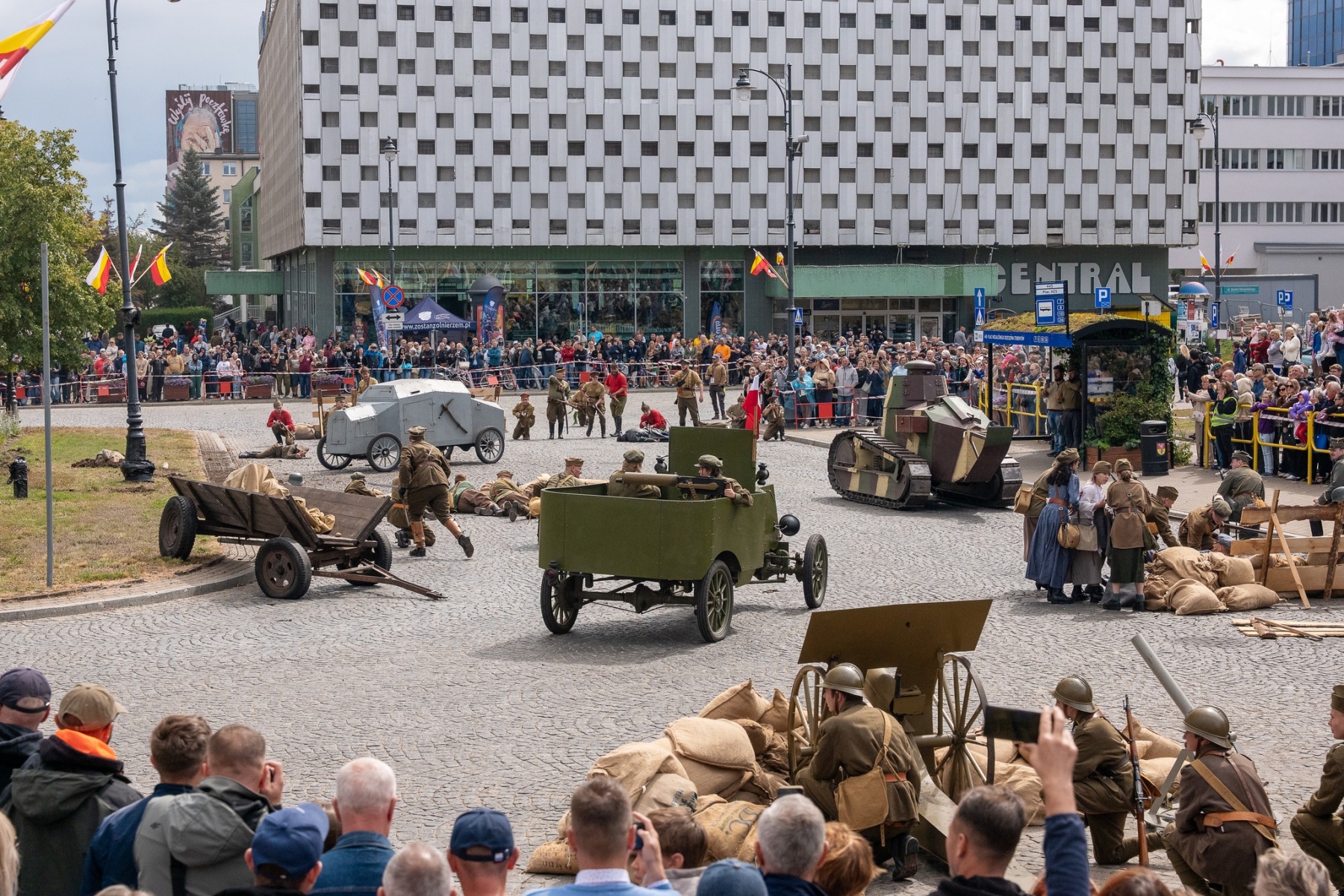 Huk wystrzałów, wybuchy i żołnierze walczący na ulicach – tak wyglądało widowisko historyczne na placu Niezależnego Zrzeszenia Studentów w Białymstoku. W niedzielę setki mieszkańców oglądały rekonstrukcję Bitwy Białostockiej z 22 sierpnia 1920 roku.