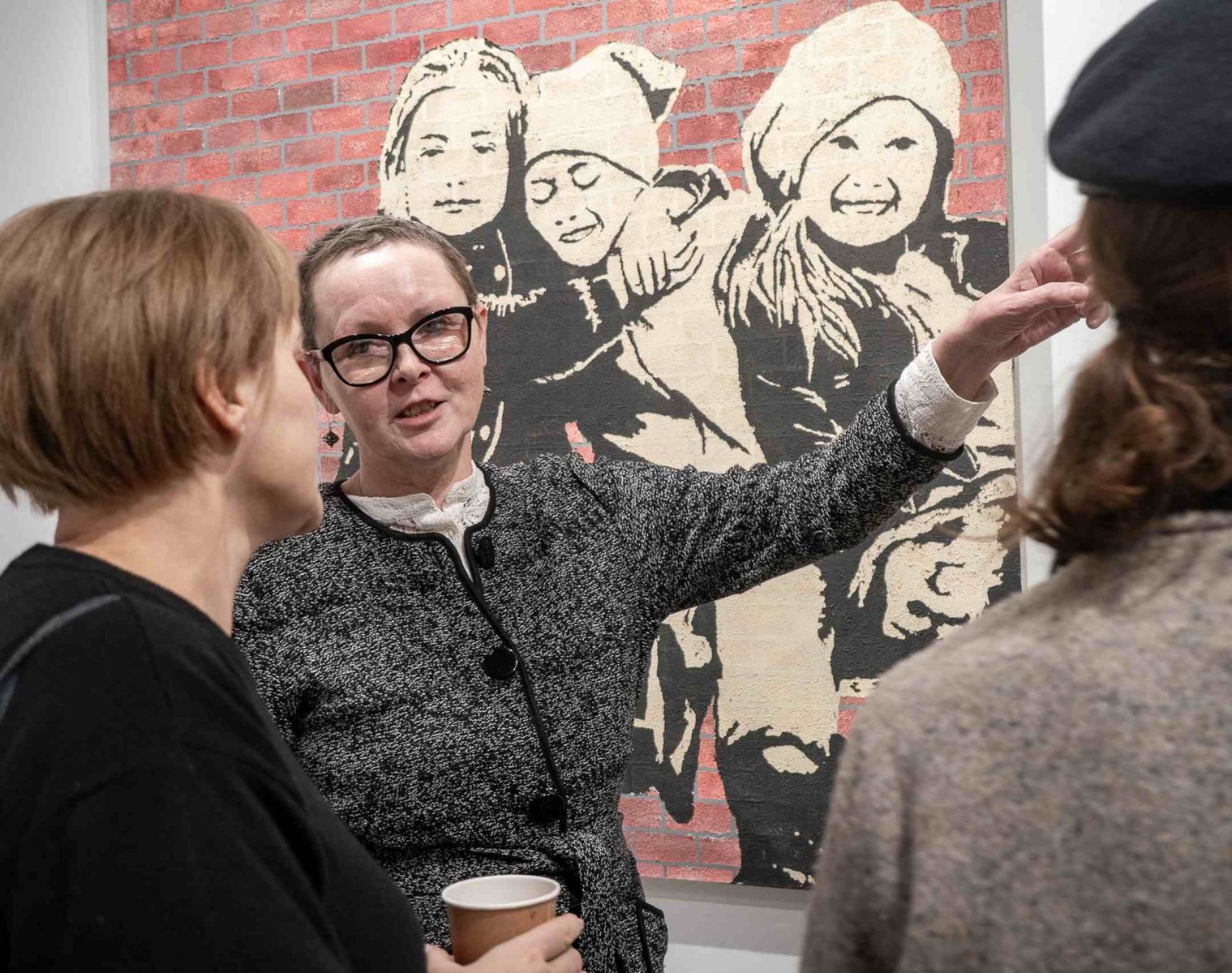 - murale – twórczyni określa je bardziej jako graficzne komunikaty niż tradycyjne obrazy opowiadające historię