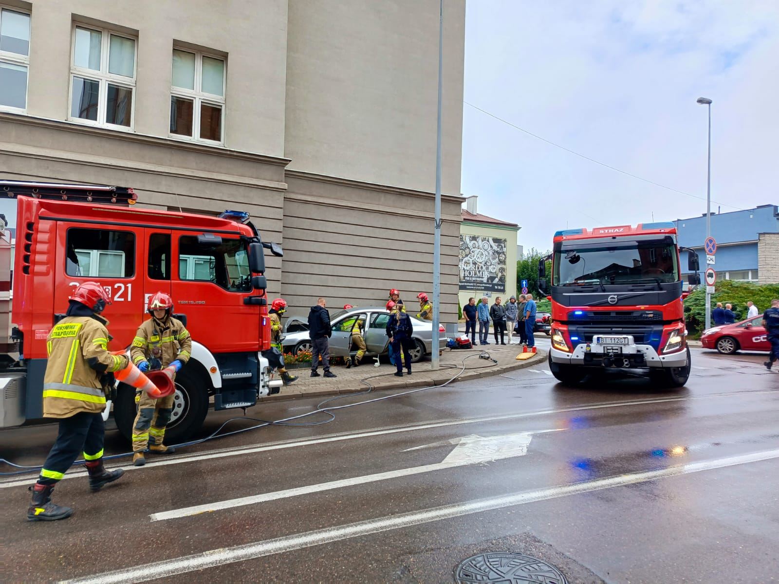 Do zdarzenia doszło około godziny 8.30. Samochód osobowy, którym kierował 42-letni białostoczanin, wypadł z jezdni, zjechał na chodnik i uderzył w ścianę szkoły im. Krzysztofa Kamila Baczyńskiego. Na miejsce wezwano straż pożarną, pogotowie i policję.