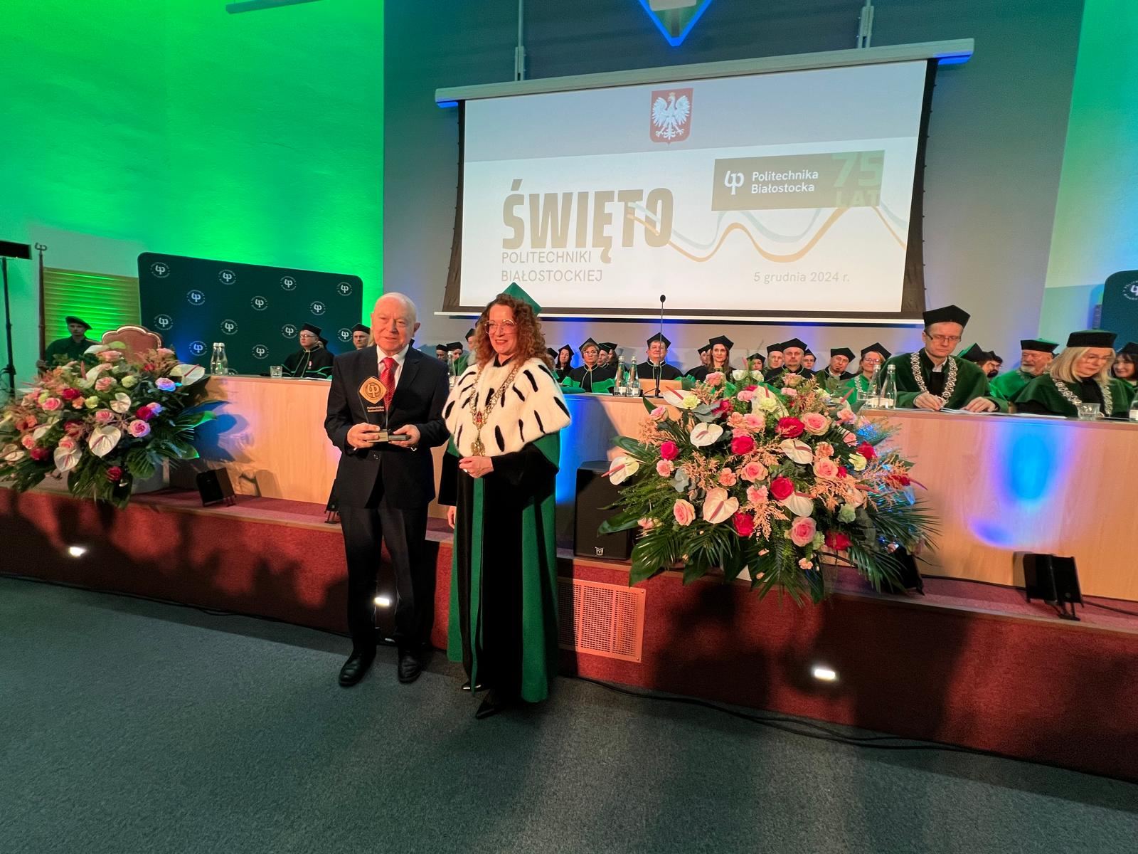 Święto Politechniki Białostockiej to okazja do uhonorowania ważnych dla uczelni naukowców. Odznakę „Zasłużony dla Politechniki Białostockiej” otrzymał prof. Włodzimierz Lewandowski, który na co dzień pracuje na Wydziale Budownictwa i Nauk o Środowisku w Katedrze Chemii, Biologii i Biotechnologii. Zajmuje się badania interdyscyplinarnymi w biotechnologii i technologii żywności.