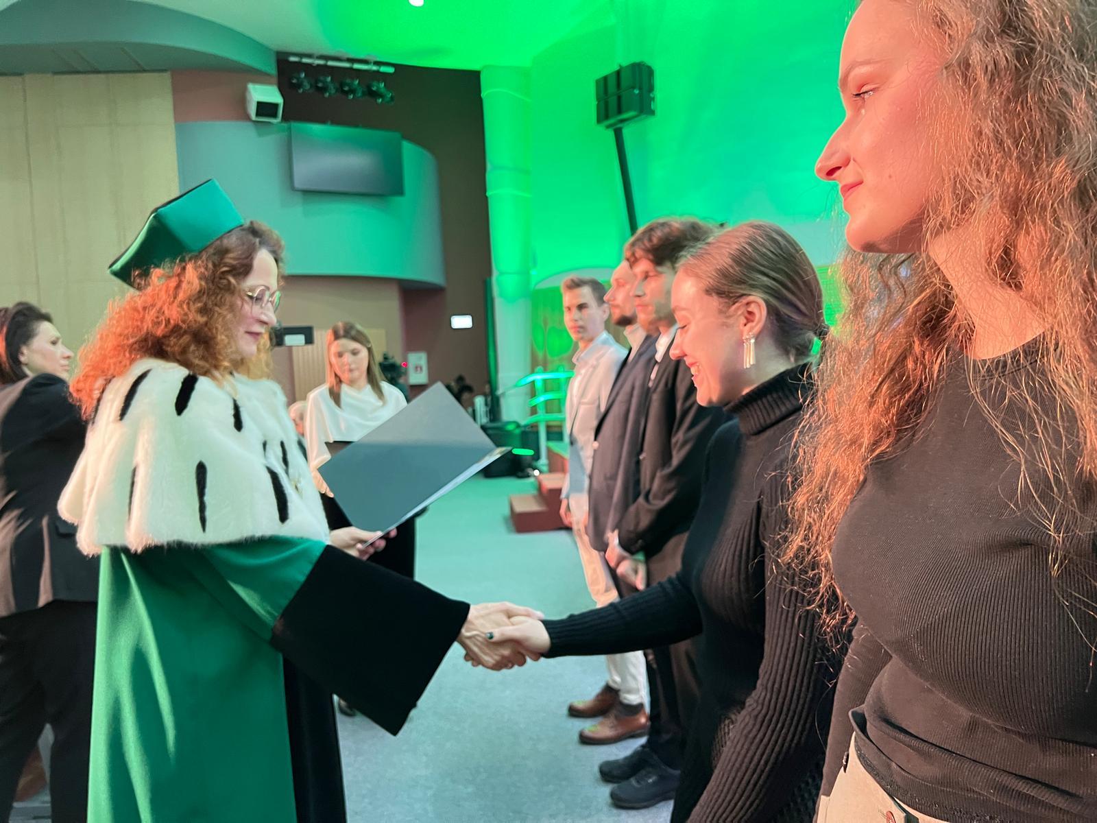 Senat uczelni przyznał też wyróżnienia najlepszym studentom – w tym gronie ze średnią ocen 5.0 znalazła się Ewelina Łobacz, studentka kierunku grafika na Wydziale Architektury Politechniki Białostockiej.