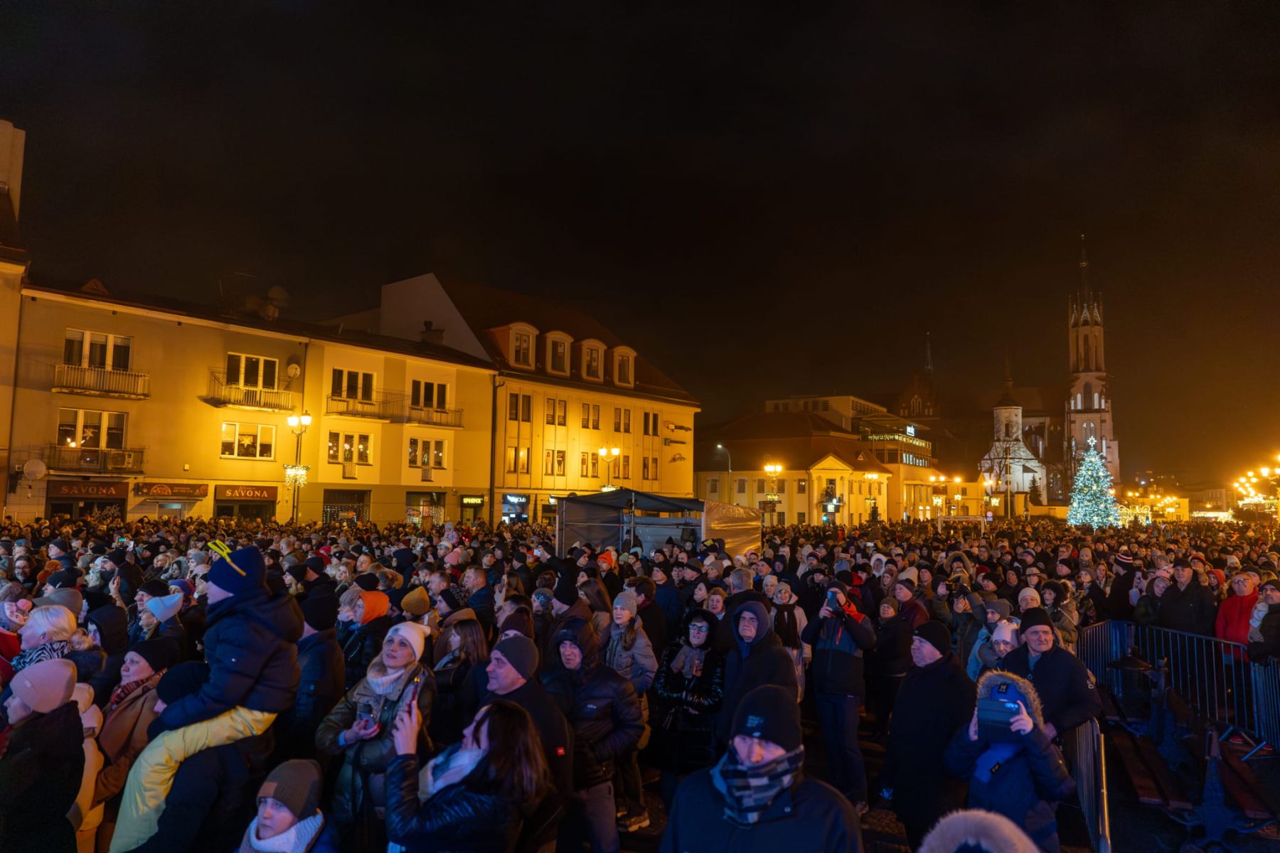 Największa impreza odbyła się tradycyjnie na Rynku Kościuszki, gdzie zgromadziły się tysiące białostoczan. Główną gwiazdą wieczoru był zespół Blue Cafe, który porwał publiczność swoimi największymi przebojami i energicznym występem. Na scenie pojawili się również Sw@da X Niczos oraz Kalwi & Remi, dostarczając mieszanki tanecznych rytmów i muzyki elektronicznej, która rozgrzała publiczność mimo zimowej aury.