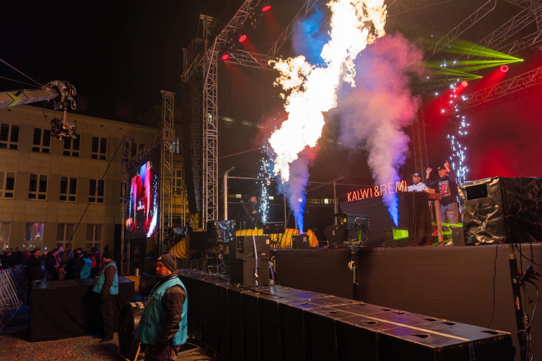 Kulminacją wieczoru był widowiskowy pokaz laserowy, który rozświetlił niebo nad Rynkiem Kościuszki. Kolorowe wiązki światła tworzyły zapierające dech w piersiach kształty, harmonizując z muzyką i budując magiczną atmosferę na początek nowego roku.