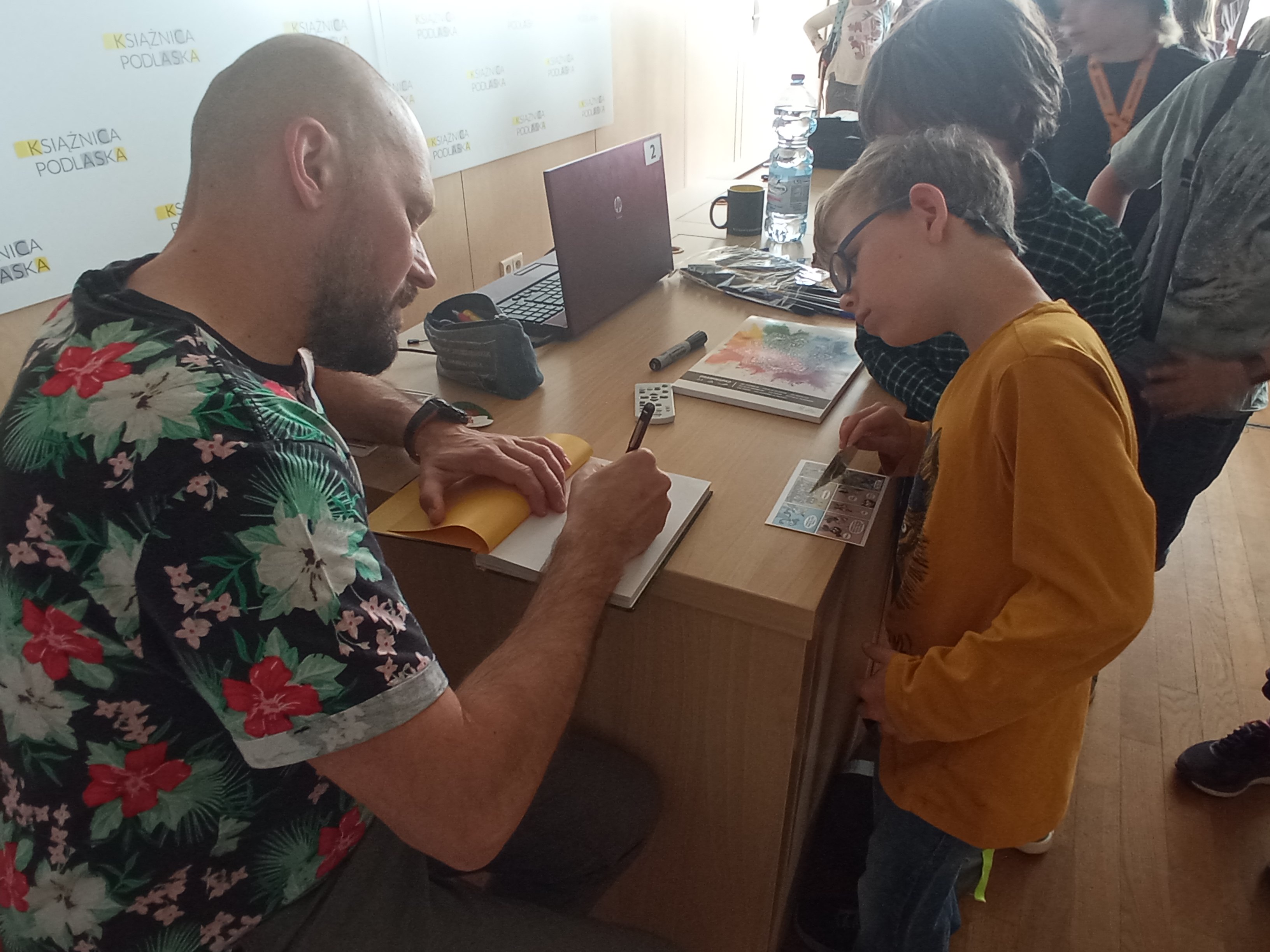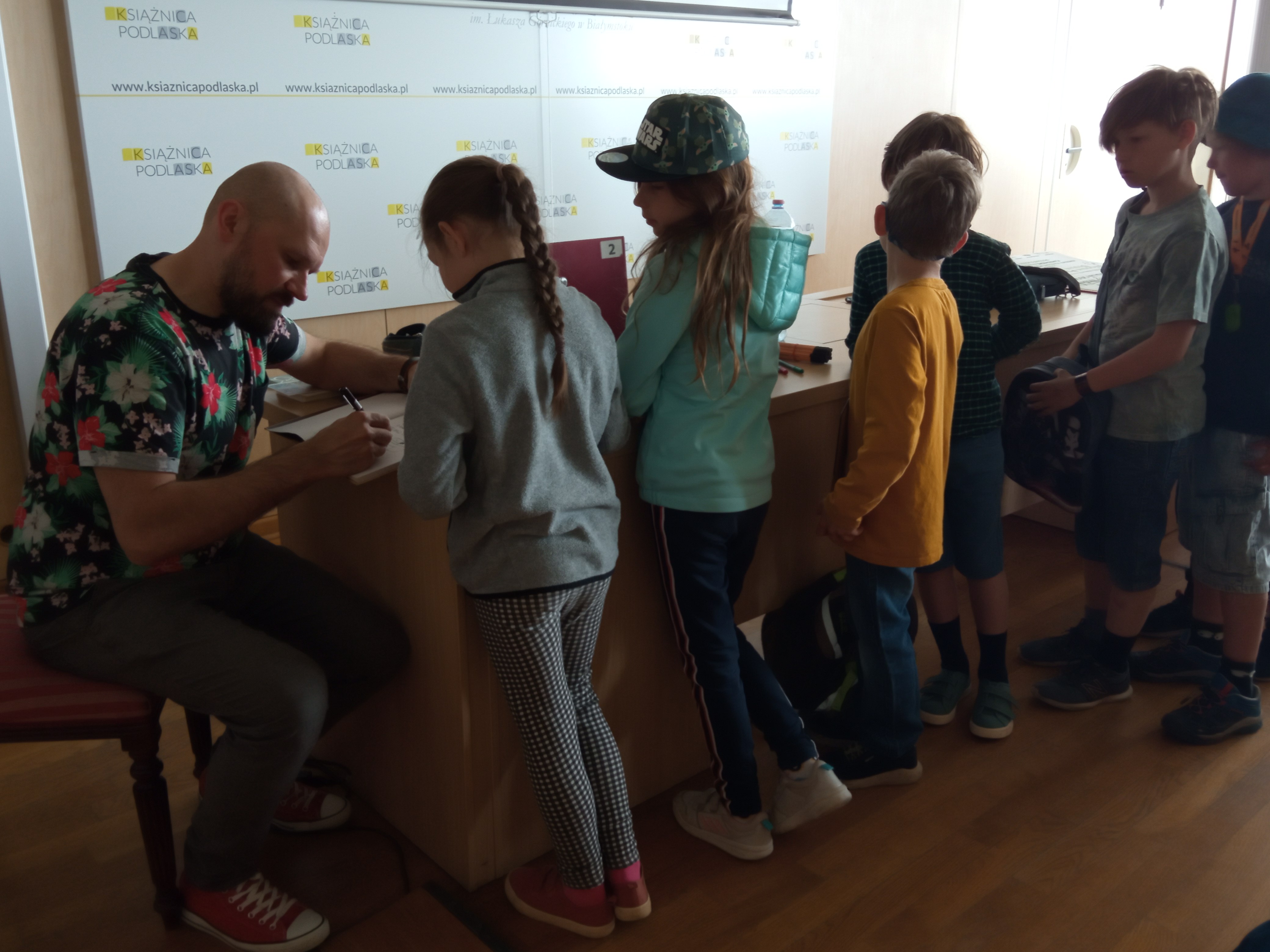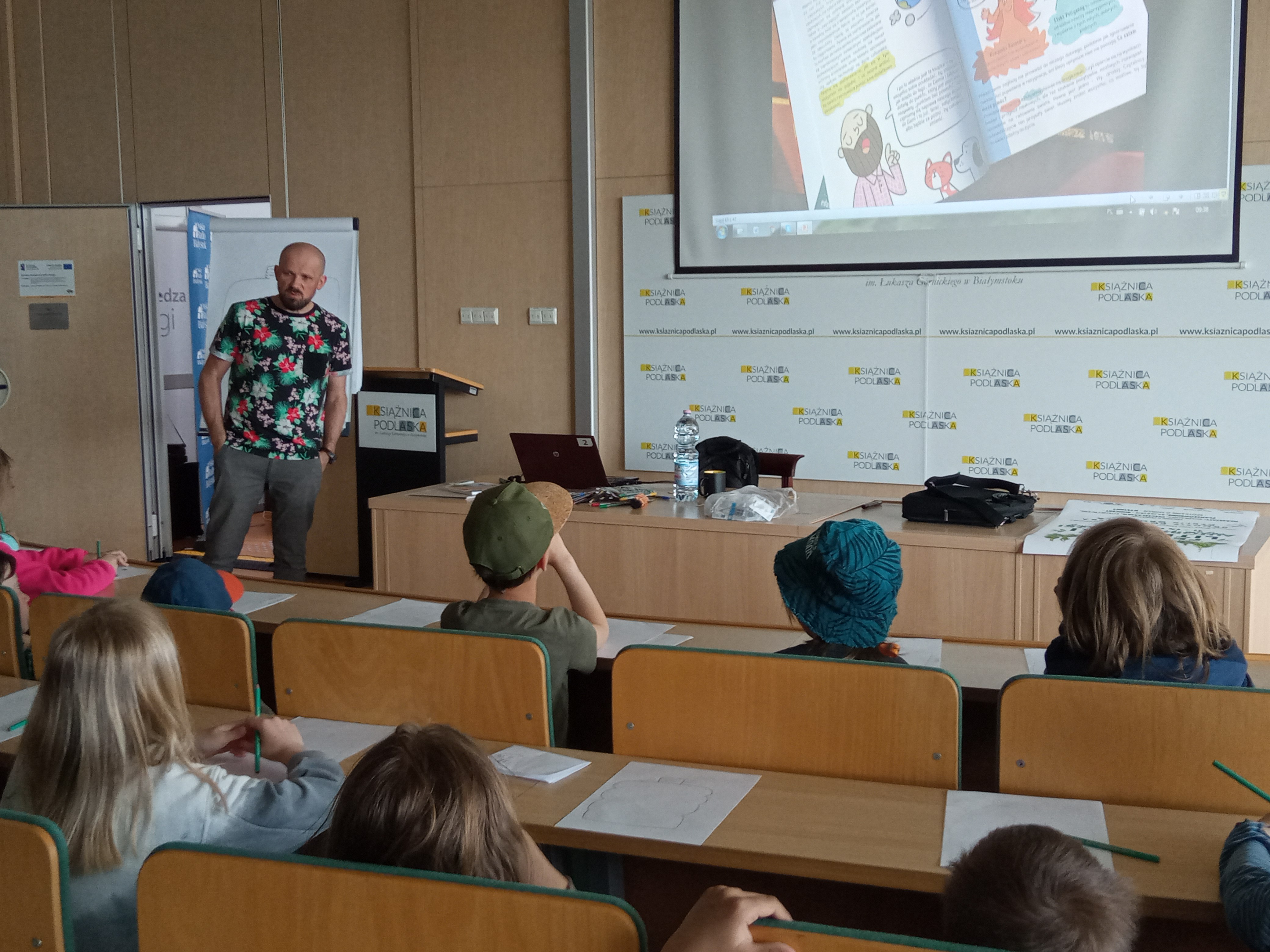 Tomasz Samojlik jest popularyzatorem przyrody oraz rysownikiem i twórcą komiksów, których bohaterami są zwierzęta, m.in. żubry, czy ryjówki. W czwartek (12.05) rysownik spotkał się z dziećmi z białostockiej „zielonej szkoły”. Były opowieści i rozmowy o bohaterach komiksów, o tym, jak ważne jest dbanie o naszą przyrodę i planetę, a także malowanie plakatów i autografy.