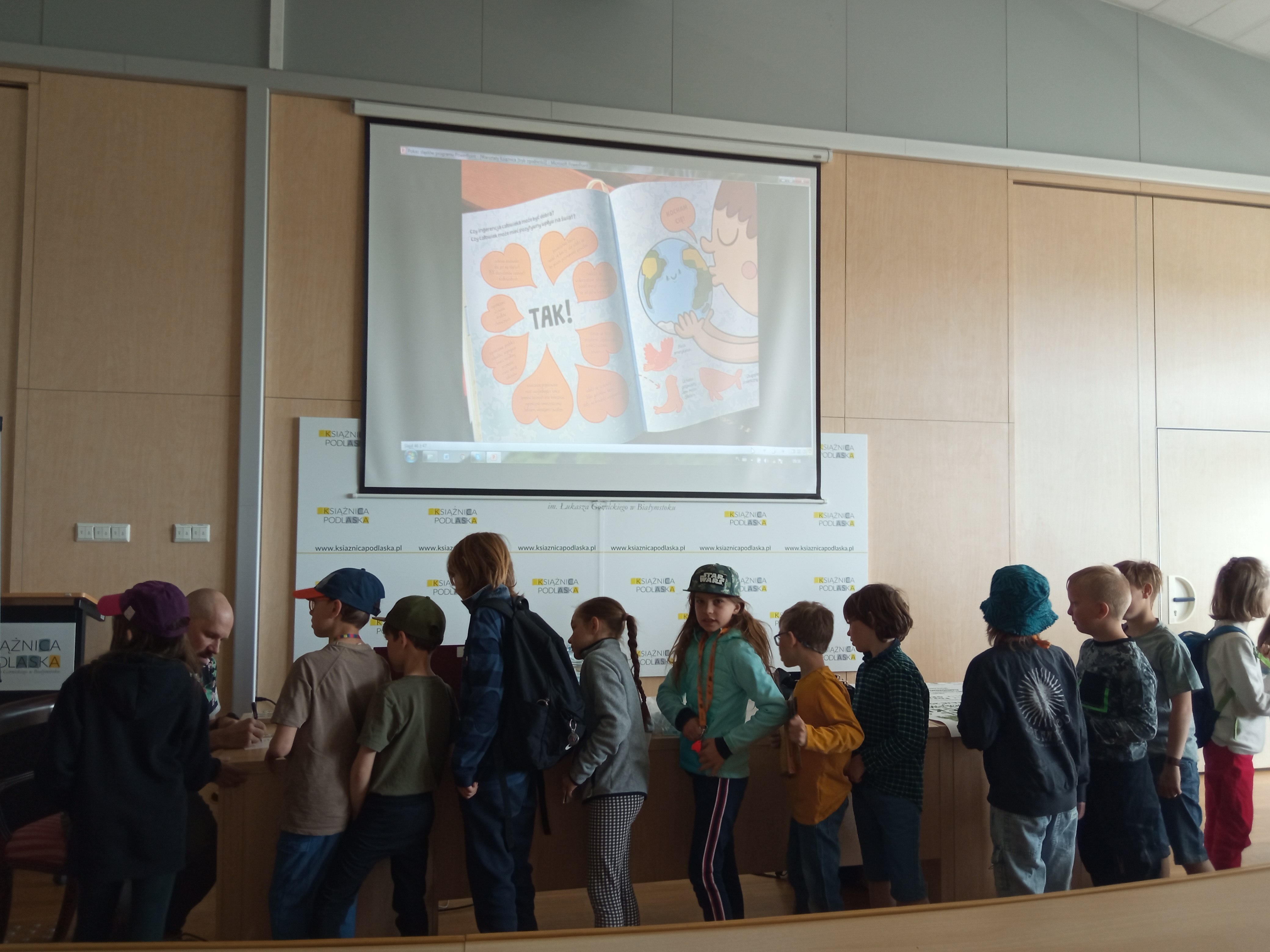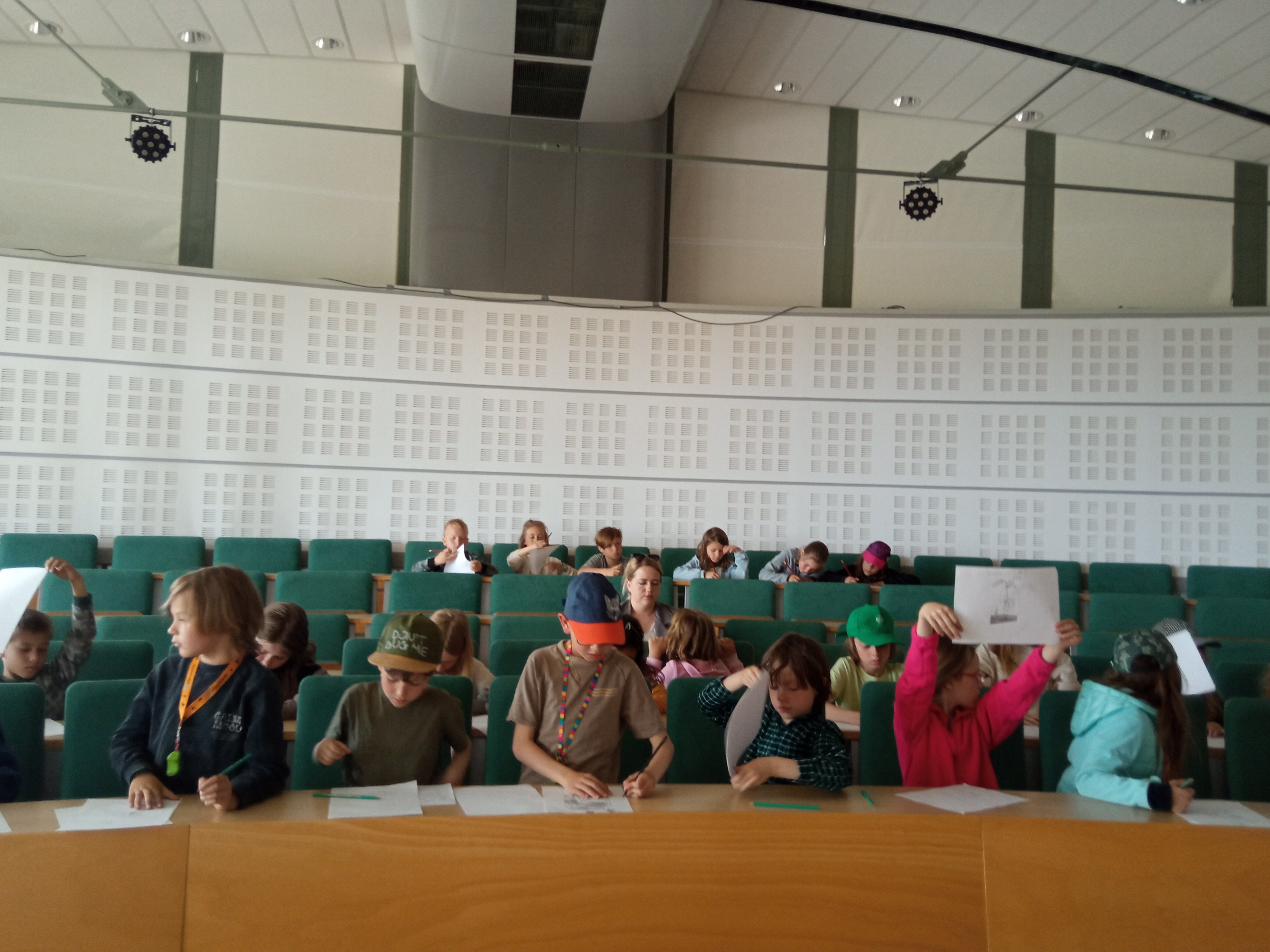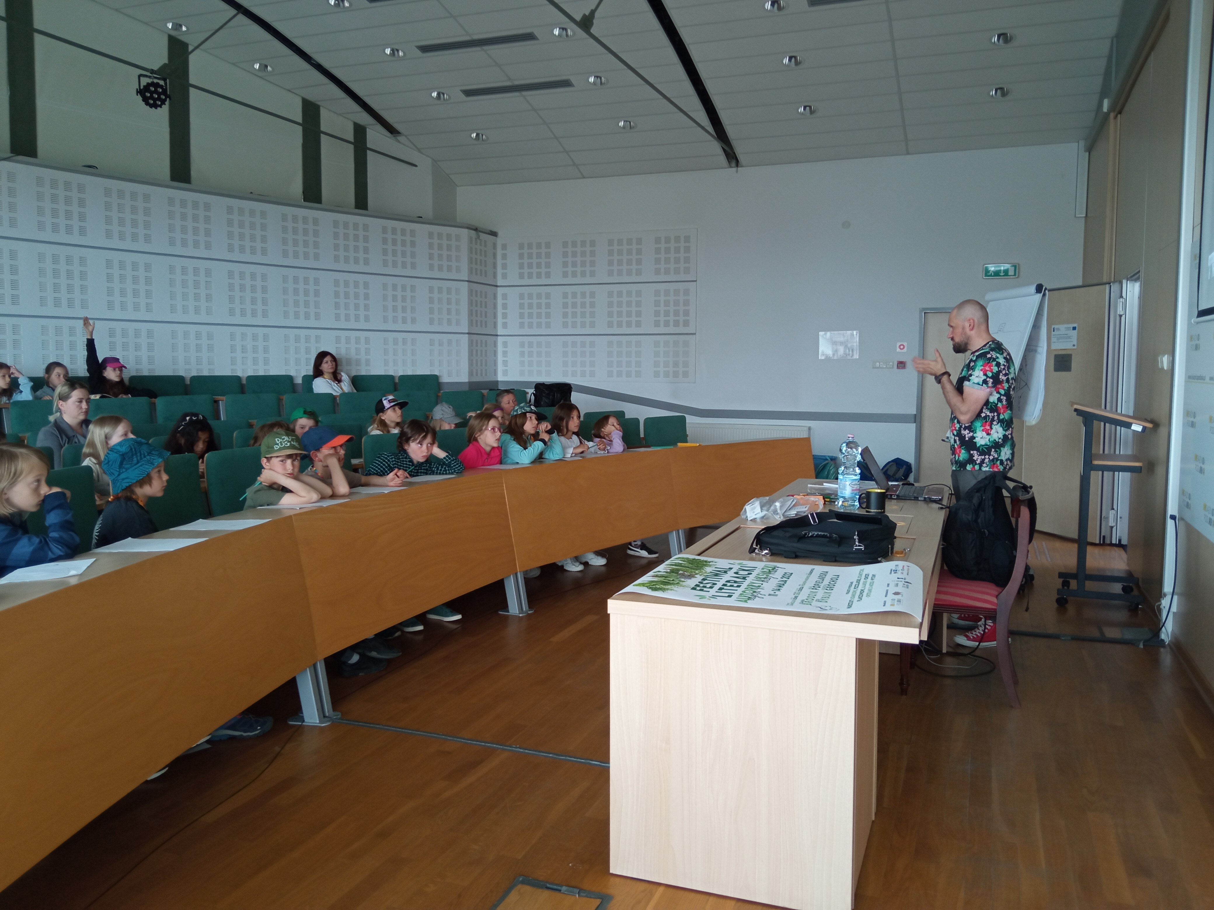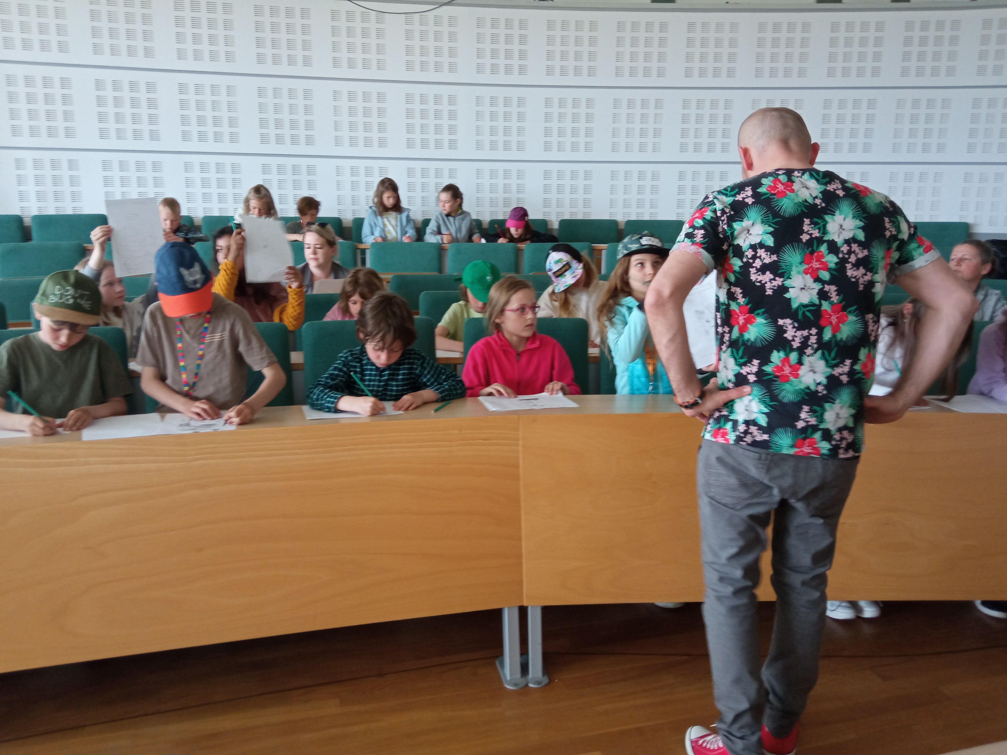 A ponieważ dzieci mają mnóstwo pomysłów, podczas spotkania rysownik chciał zainspirować najmłodszych do stworzenia plakatu skierowanego do dorosłych o ochronie przyrody.